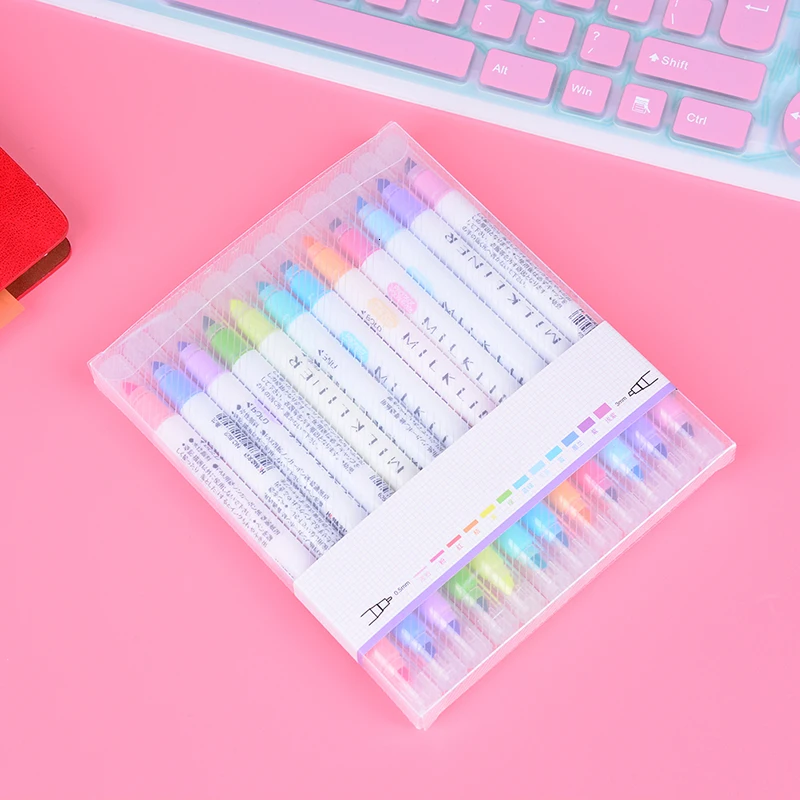 Name: Rotuladores de arte uso didáctico, 12 Uds., rotuladores de doble cabeza de 12 colores, resaltador de cuenta, diario, decoración, marcador de colores Pastel, bolígrafos de notas